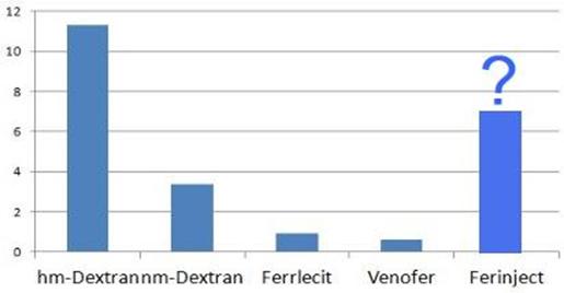 Das Universitätsklinikum Hamburg Eppenberg hat auf der Website www.eiseninfo.de Vergleichszahlen publiziert (Quelle: FDA Medwatch Report, Chertow et al.) (Chertow GM, Mason PD, Vaage-Nilsen O. Ahlmen J. Update on adverse drug events associated with parenteral iron. Nephrol Dial Transplant 2006; 21: 378-82)